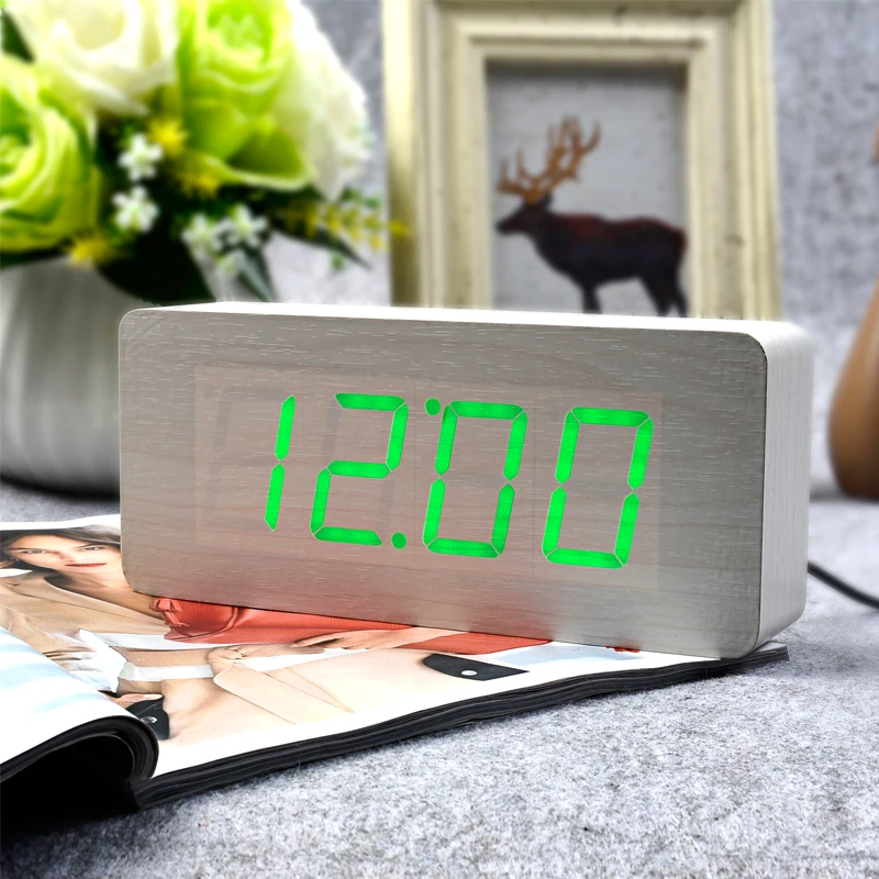 . [Скидка 36%] Купить Suncree цифровой светодиодный часы с большими номерами, деревянный будильник со звуковым управлением, электронные настольные часы с температу... Продажа Дешево.