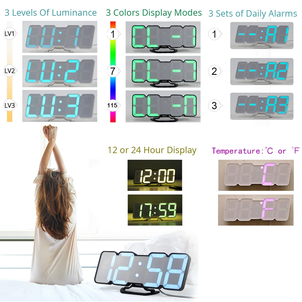 . [Скидка 40%] Купить Цифровые настенные часы с дистанционным управлением, 115 цветов, светодиодные настольные часы, Настольный будильник со звуком, отображение в... Продажа Дешево.