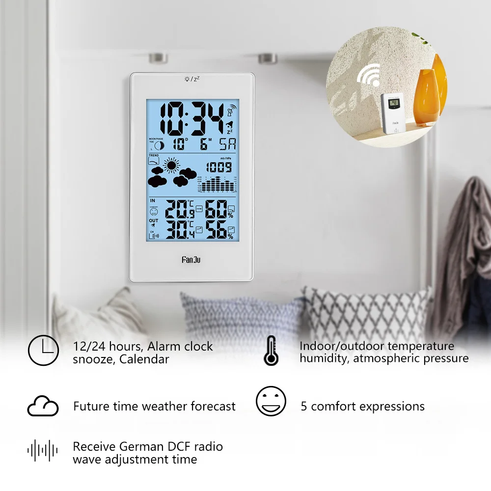 Special Offer FanJu Цифровая метеостанция настенный будильник термометр гигрометр барометр стол современные дизайн времени календарь беспроводной Discount 45% Today!
