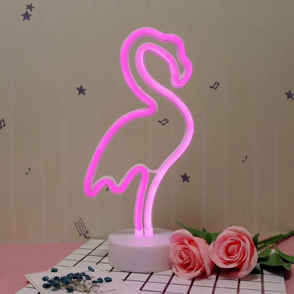 . [Скидка 30%] Купить Творческий ярко розовый Фламинго неоновые светодиодный ночной Светильник для детских комнат Батарея Мощность ночной Светильник Настольны... Продажа Дешево.