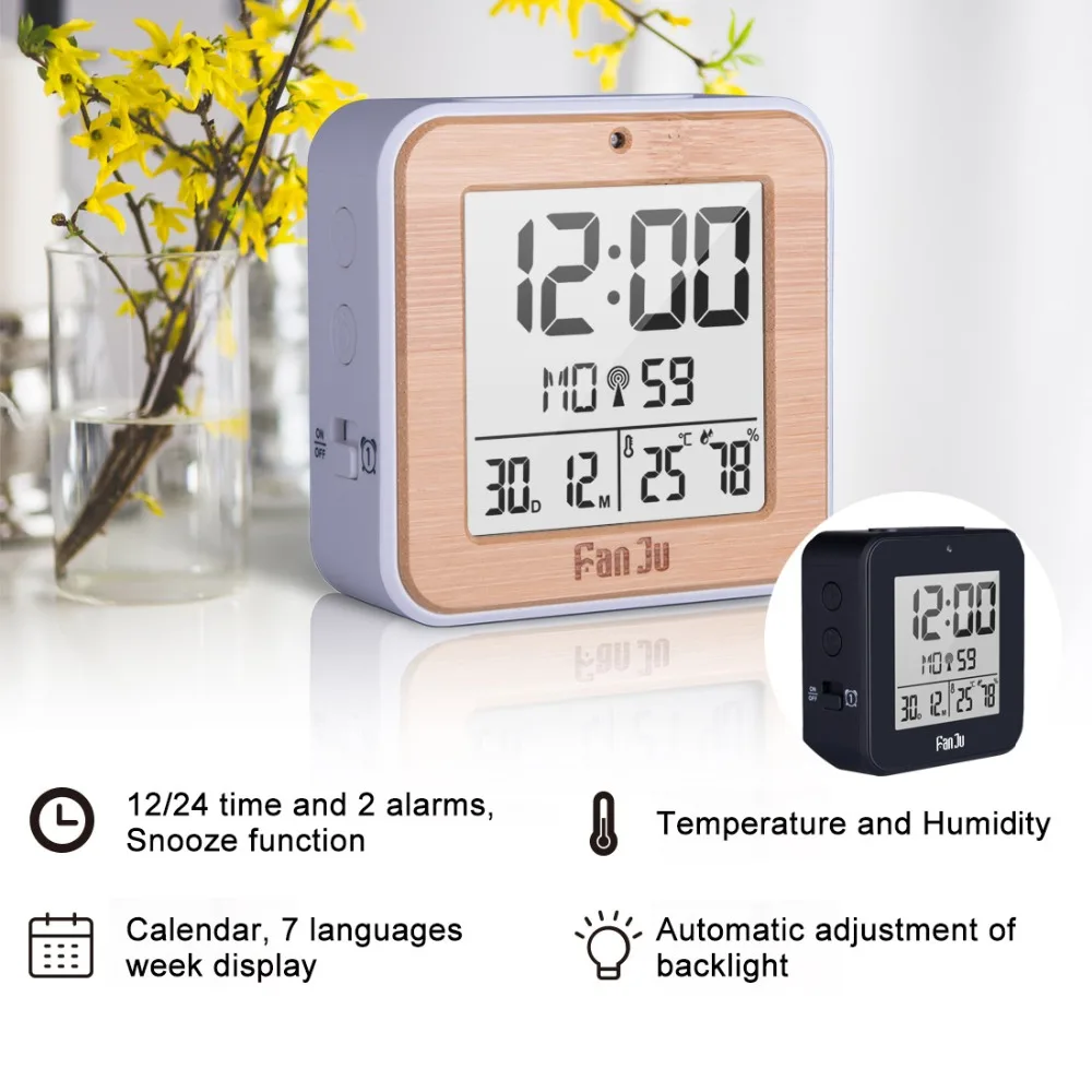 . [Скидка 55%] Купить FanJu цифровой будильник светодиодный DCF радио двойной будильник автоматическая подсветка Электронная Температура Влажность стол время офис... Продажа Дешево.
