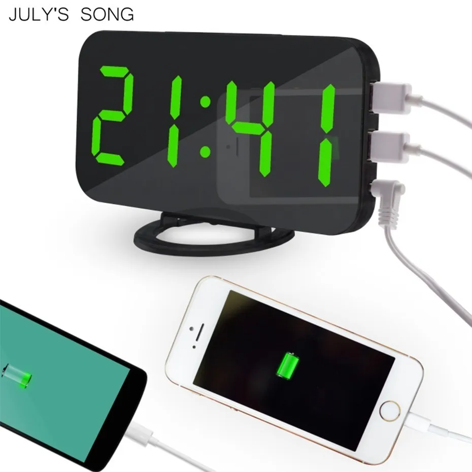 . [Скидка 34%] Купить Июля песня зеркальные часы будильник цифровой светодиодный часы USB зарядки телефона электронные часы настольные Повтор автоматический нас... Продажа Дешево.